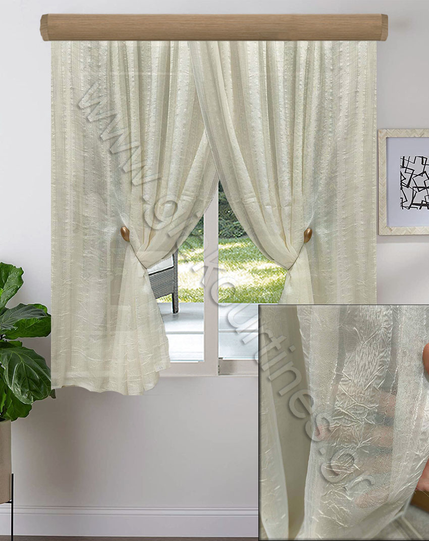 Κουρτινάκι για παράθυρο έτοιμο ραμμένο. Ατσαλάκωτο ύφασμα με ρίγες μέσα στην ύφανση. Χρώμα υπόλευκο προς εκρού. Είναι κουρτίνα που δεν χρειάζεται σίδερο. Ράβονται στο εργαστήριο μας με ελληνική ποιοτική τρέσα. Οι διαστάσεις μπορούν να τροποποιηθούν. Η τιμή αφορά 2 τεμάχια.