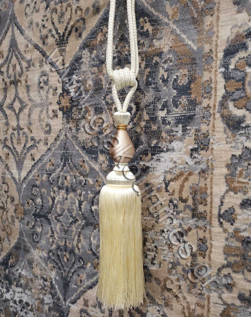 Φούντα για δέσιμο κουρτίνας.Χρώμα εκρού με μπεζ και χρυσό δακτύλιο.