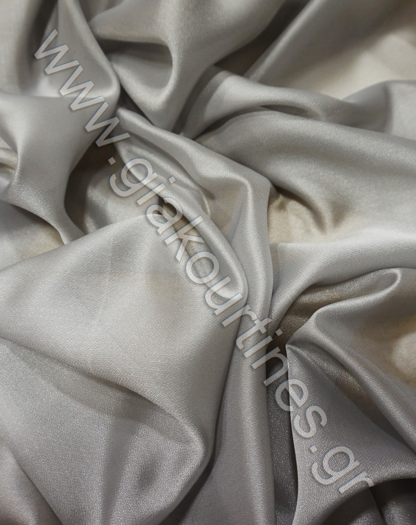 Ύφασμα ζορζέτα extra πολυτελείας, με διαφάνεια. Είναι σταθερό ύφασμα με μεταξένια υφή και βαρίδι στο τελείωμα. Το χρώμα της είναι γκρι και δεν θέλει σίδερο. Μπορεί να χρησιμοποιηθεί ως κουρτίνα μόνη της ή σε συνδυασμό με κάποια πιο χοντρή ή ως ανάλαφρο ριντό.