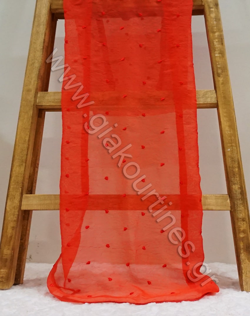 Κουρτίνα ατσαλάκωτη , χρώμα πορτοκαλί σκούρο με κεντημένες καρδούλες