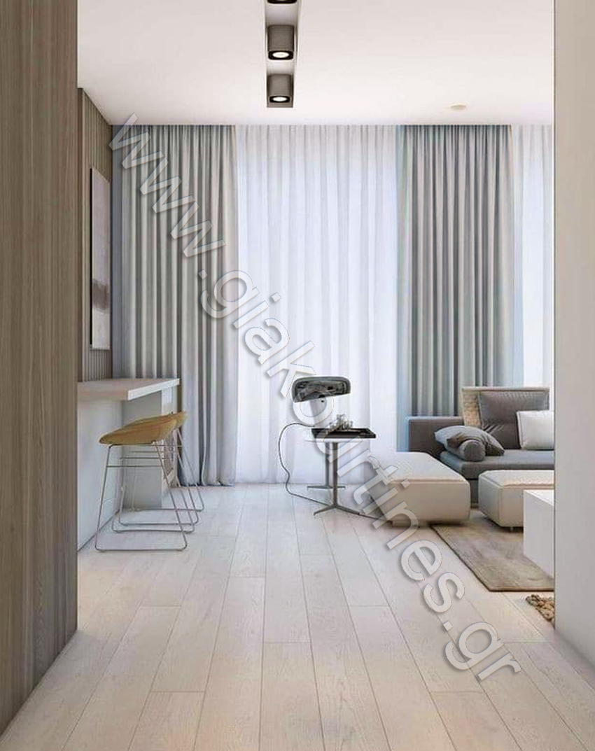Κουρτίνα blackout ανοιχτό γκρι + εσωτερική κουρτίνα λευκή