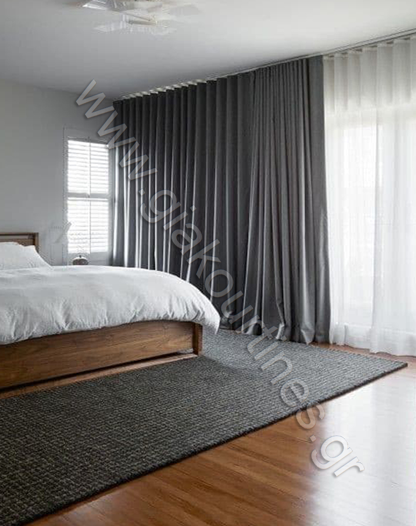 Κουρτίνα blackout γκρι σκούρο + εσωτερική κουρτίνα λευκή