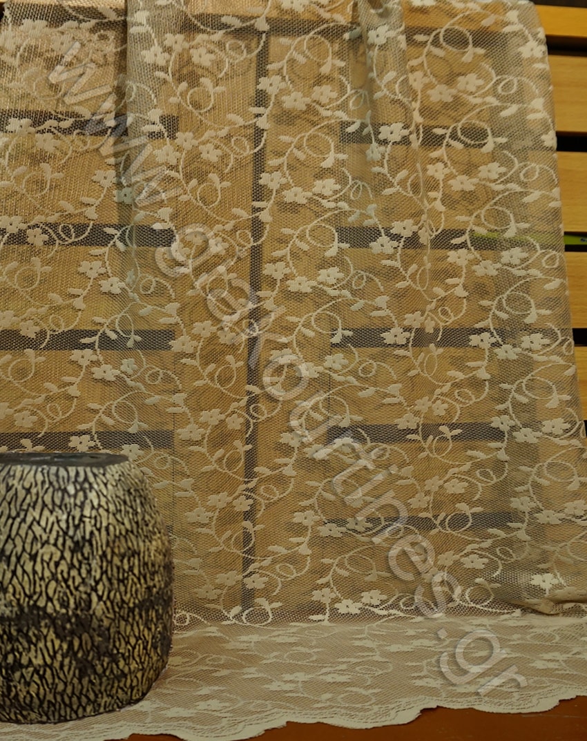 Κουρτίνα δαντέλα, διάφανη, ατσαλάκωτη. Έχει σχέδιο ανθάκια σε όλη την επιφάνεια και φιστόνι στο τελειώμα. Το χρώμα της κουρτίνας είναι μόκα. Εξαιρετικά χυτό ύφασμα.