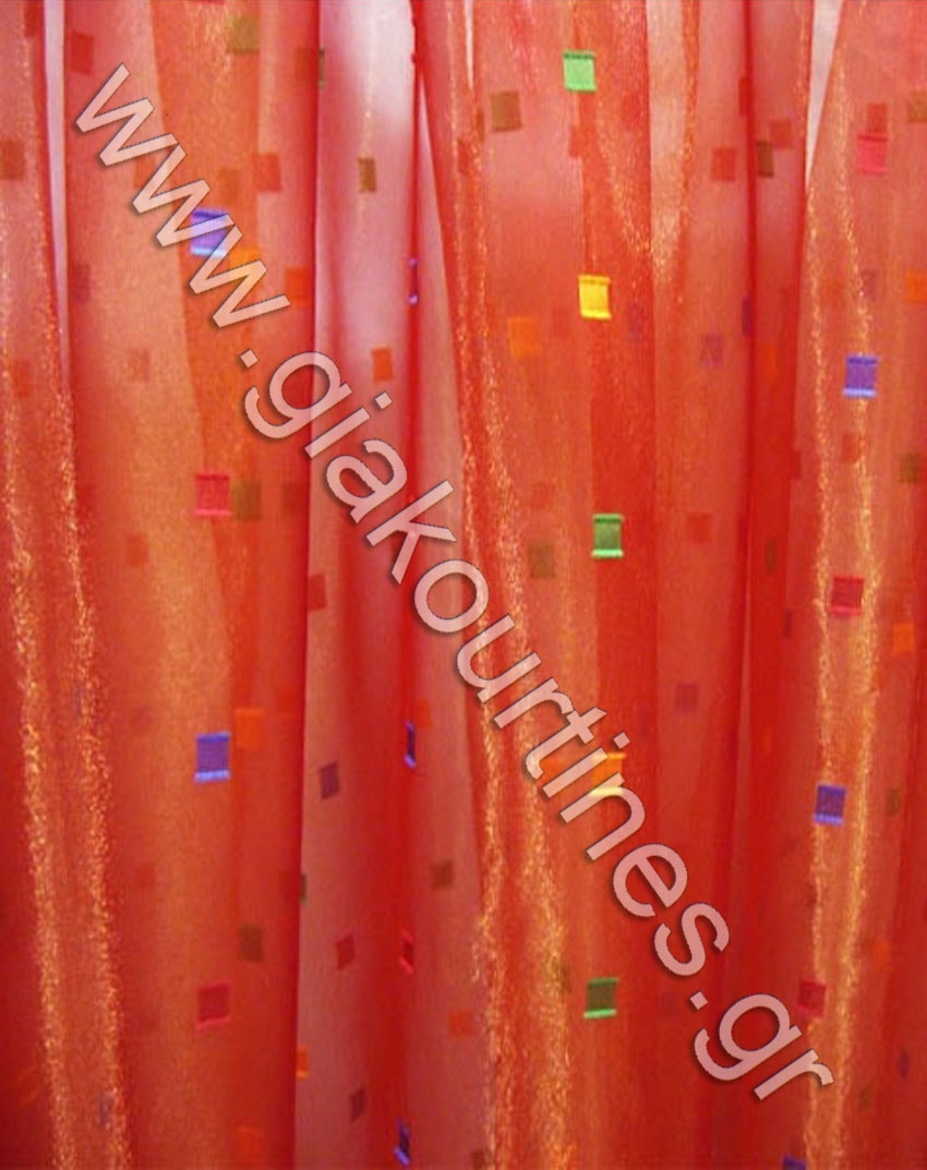 Κουρτίνα οργάντζα διάφανη, χρώματα πορτοκαλοκόκκινη με χρωματιστά σχέδια