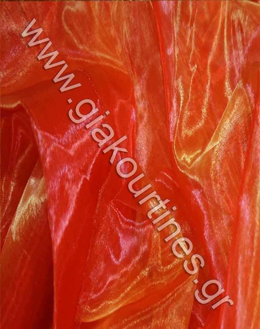 Κουρτίνα οργάντζα διάφανη, χρώμα πορτοκαλοκόκκινη.