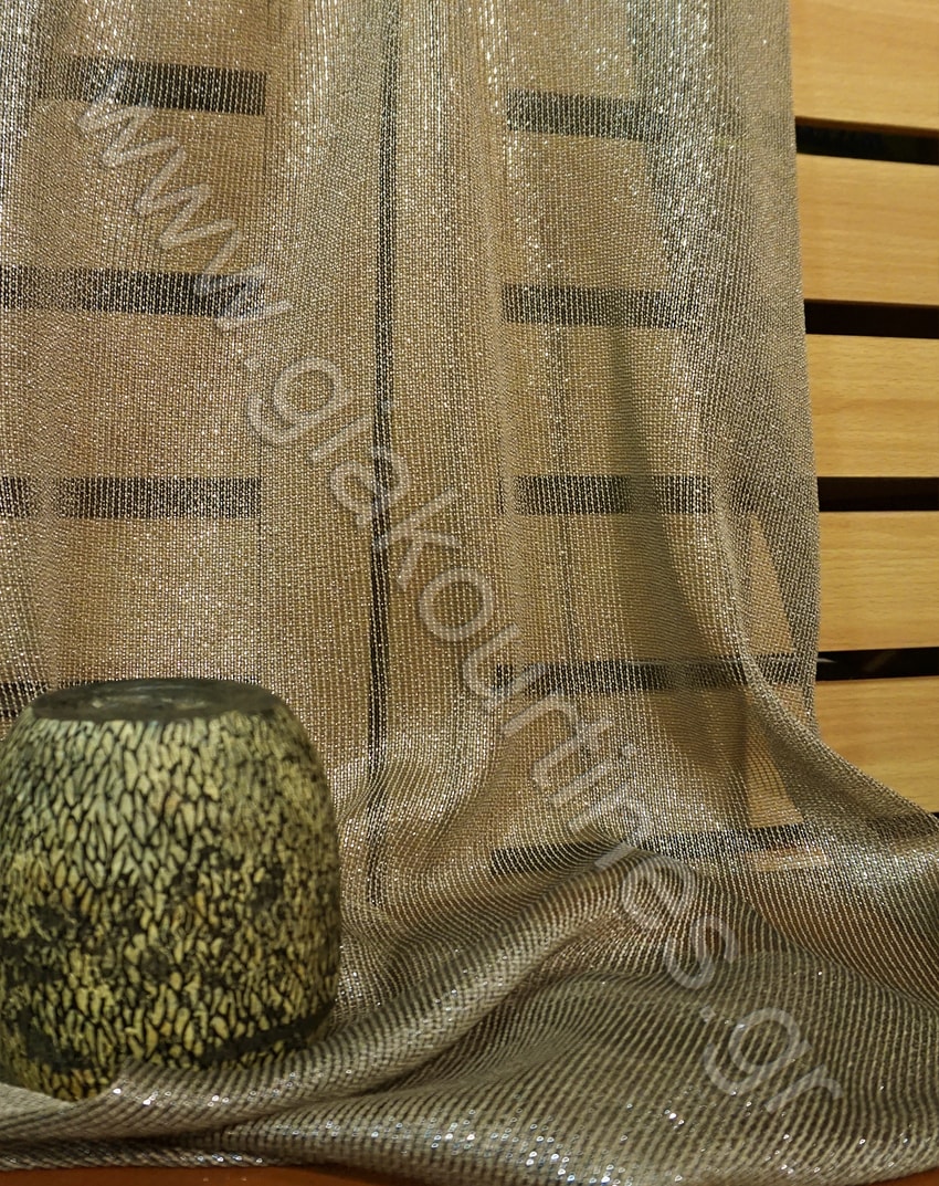 Κουρτίνα διχτάκι, διάφανη, ατσαλάκωτη, με βαρίδι στο τελείωμα. Το χρώμα της κουρτίνας είναι ουδέτερο καφέ άμμου και ασημί glitter. Εξαιρετικά χυτό ύφασμα. Δεν χρειάζεται σίδερο.