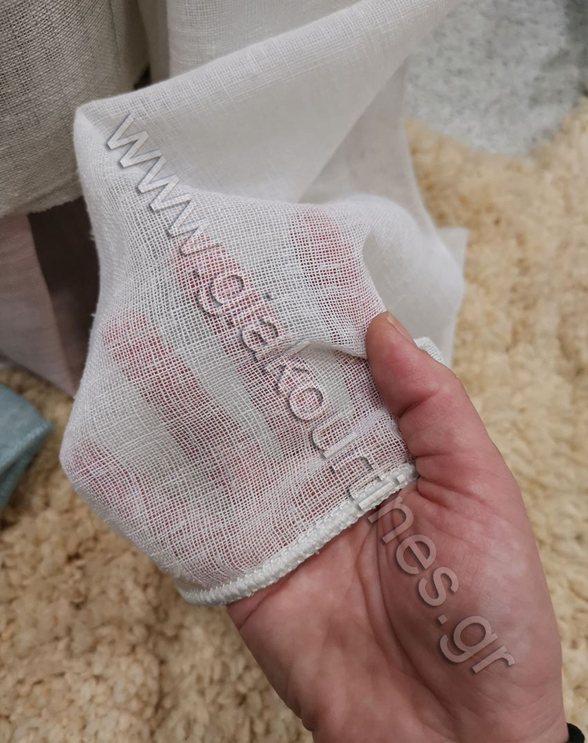 Ύφασμα για κουρτίνα , μέτριας διαφάνειας, Ευρωπαϊκών προδιαγραφών. Κουρτίνα χυτή ποιότητα γάζα τύπου λινό. Διαθέσιμη σε υπόλευκο, μπεζ, dusty pink, γκρι και πετρόλ. Διαθέτει βαρίδι στο τελείωμα.
