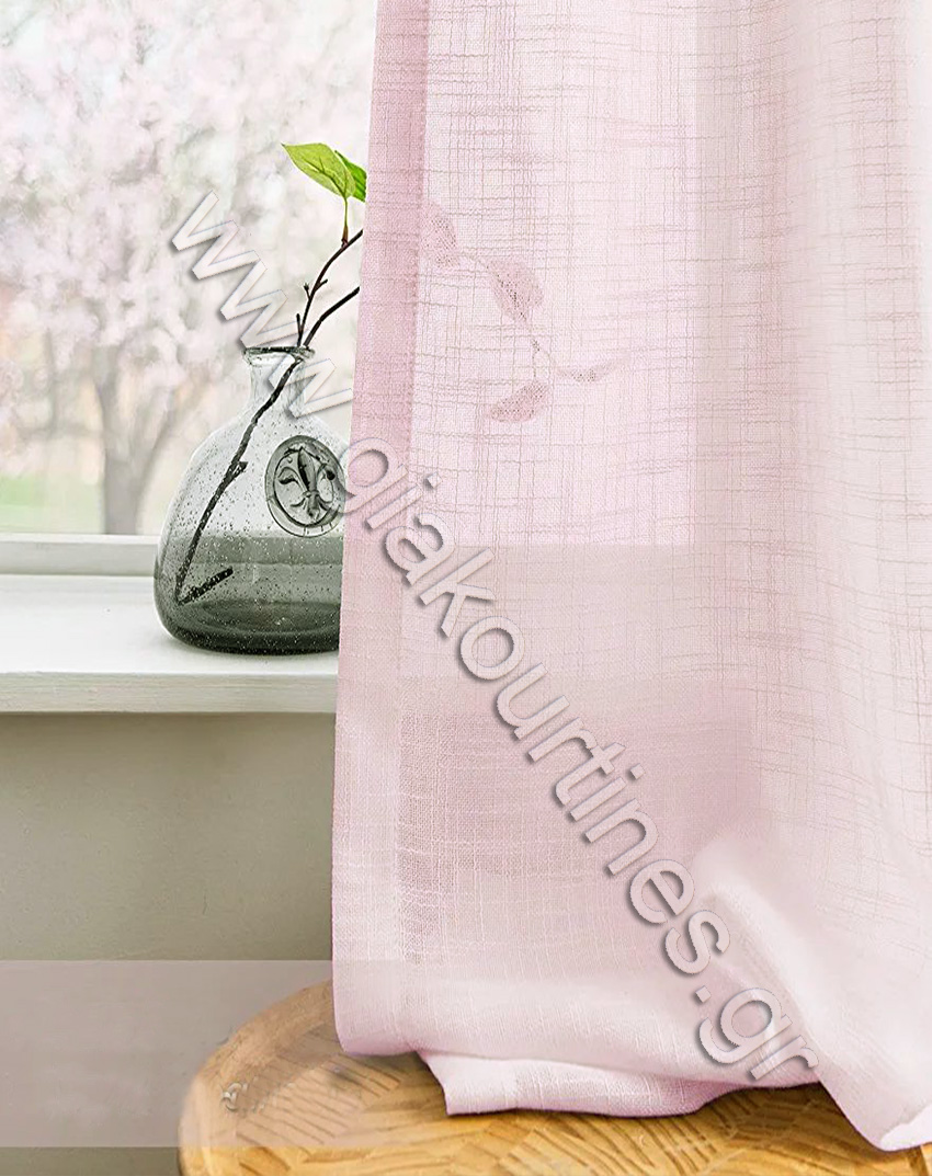 Ύφασμα για κουρτίνα , μέτριας διαφάνειας, Ευρωπαϊκών προδιαγραφών. Κουρτίνα χυτή ποιότητα γάζα τύπου λινό. Χρώμα ροζ. Διαθέτει βαρίδι στο τελείωμα.