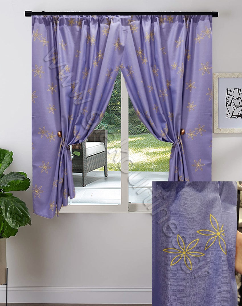 Κουρτίνα κοντή για παράθυρο. Είναι κουρτίνα σκίασης, ποιότητα λονέτα Ισπανίας. Το χρώμα της κουρτίνας είναι ανοιχτό μπλε με κίτρινα λουλούδια.Οι κουρτίνες είναι ραμμένες με ελληνική τρέσα 6 εκ. συνεχομένη πιέτα.