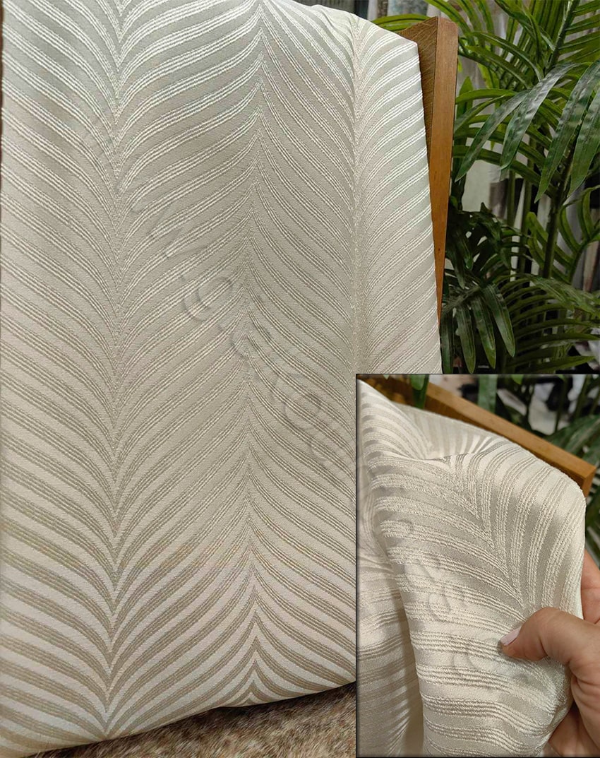 Ύφασμα για κουρτίνα, χωρίς διαφάνεια, ύφασμα ζακάρ ταφτάς ματ, Ευρωπαϊκών προτύπων. Το χρώμα της κουρτίνας είναι απαλό εκρου με σχέδιο ψαροκόκκαλο.