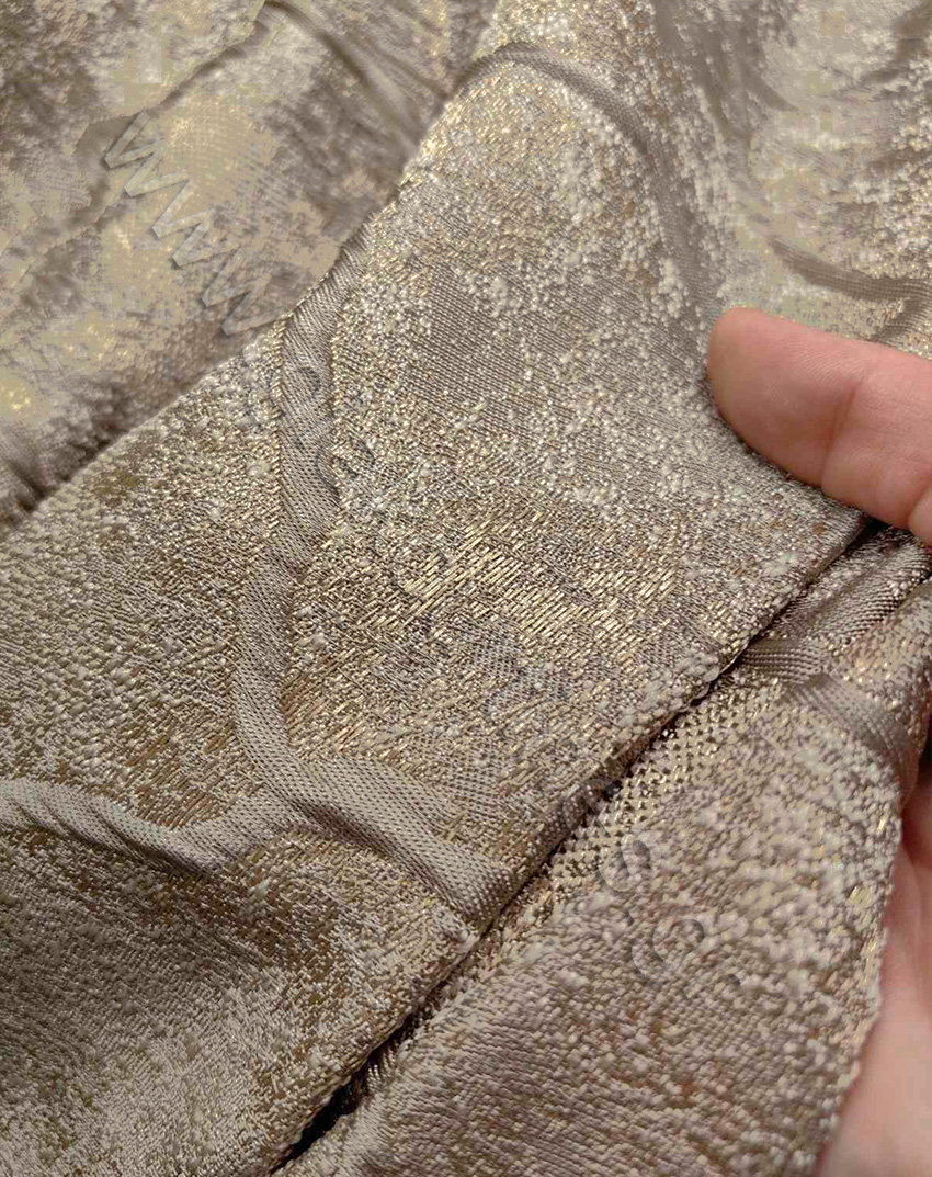 Ύφασμα για κουρτίνα, χωρίς διαφάνεια, ύφασμα ζακάρ ταφτάς ματ, Ευρωπαϊκών προτύπων. Το χρώμα της κουρτίνας είναι γκρεζ με λεπτομέρειες χρυσές και γκρι.
