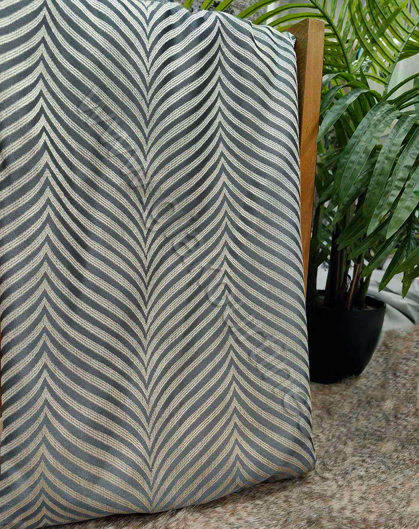 Ύφασμα για κουρτίνα, χωρίς διαφάνεια, ύφασμα ζακάρ ταφτάς ματ, Ευρωπαϊκών προτύπων. Το χρώμα της κουρτίνας είναι γκρι με σχέδιο ψαροκόκκαλο.