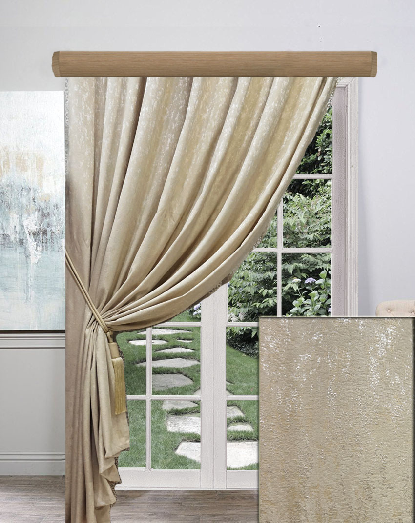Ριντό αδιάφανο, εξαιρετικά χυτό με απαλή υφή. Το χρώμα της κουρτίνας είναι μπεζ ιβουάρ με κλωστή φλος.
