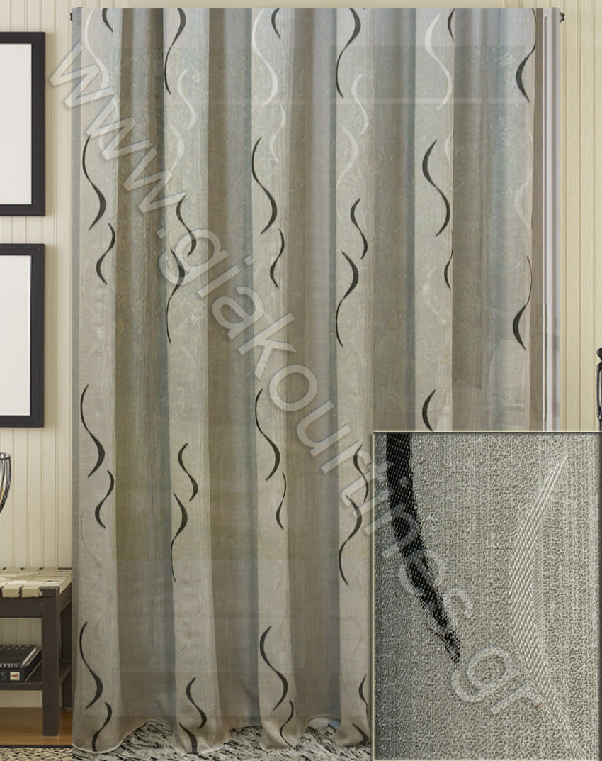 Κουρτίνα ραμμένη, ματ πολυτελείας, με διαφάνεια. Εξαιρετικά χυτό και μαλακό ύφασμα με βαρίδι στο τελείωμα για σωστό στήσιμο. Το χρώμα της κουρτίνας είναι γκρι με σχέδιο κάθετο φιλ κουπέ μαύρο και γκρί. Μπορεί να χρησιμοποιηθεί ως κουρτίνα μόνη της ή σε συνδυασμό με κάποια πιο χοντρή, ριντό.
