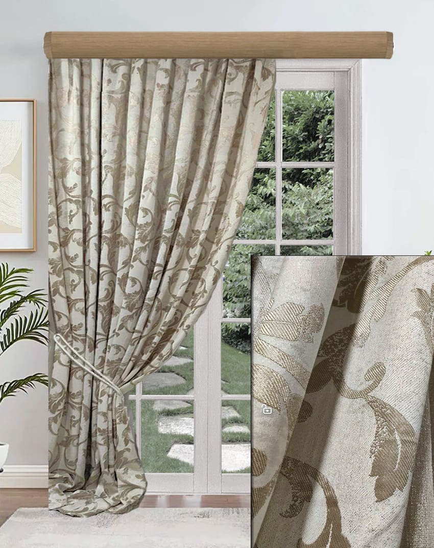 Ριντό αδιάφανο ραμμένο. Είναι εξαιρετικά χυτό και μαλακό ύφασμα με σχέδιο μπαρόκ κλαδάκι.  Το χρώμα της κουρτίνας είναι ουδέτερη απόχρωση ιβουάρ με μπαρόκ χρώμα μπεζ άμμου μεταλλιζέ. Μπορεί να χρησιμοποιηθεί μόνη της, ως κουρτίνα σκίασης ή σε συνδυασμό με κάποια πιο λεπτή, ως ριντό ή ως ρόμαν πακέτο.