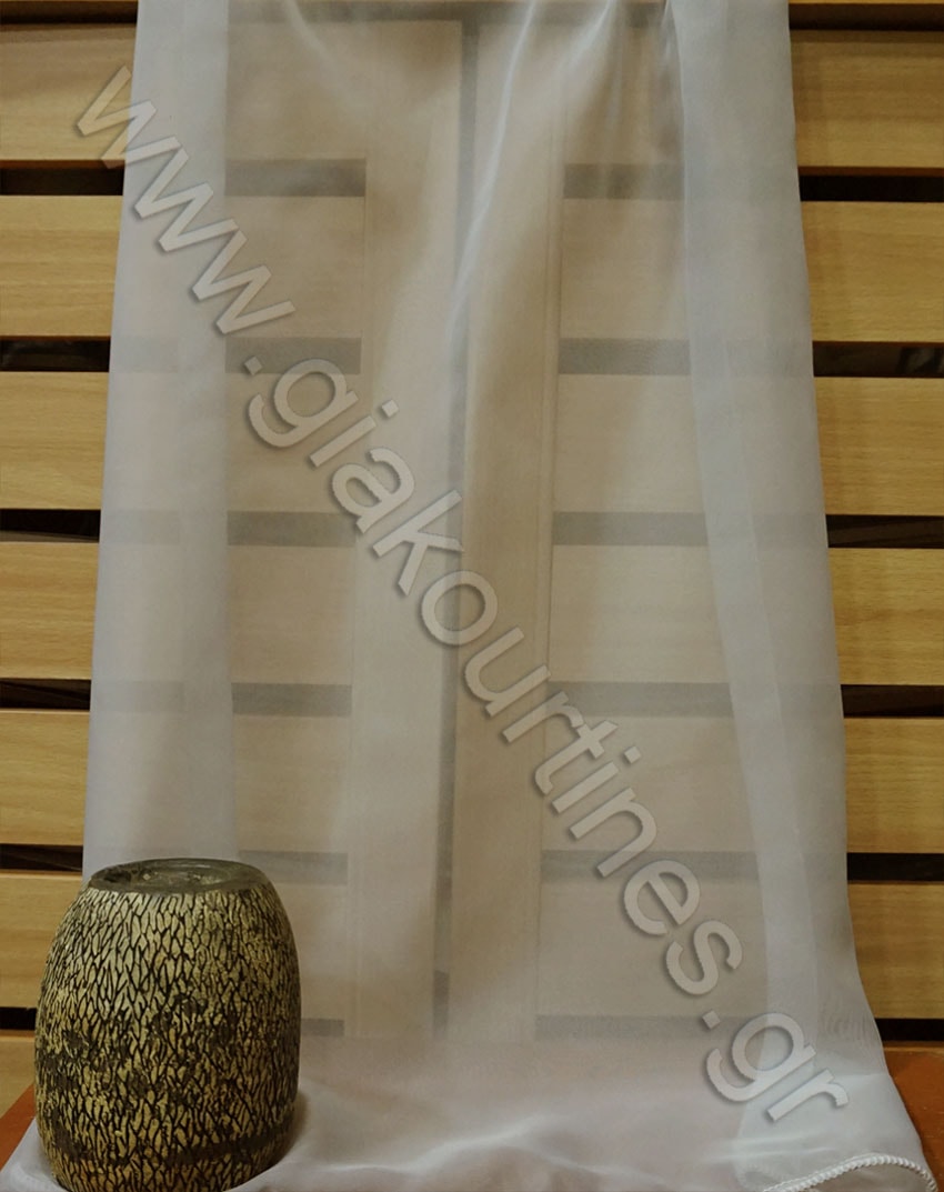 Κουρτίνα βουάλ, διάφανη, με βαρίδι στο τελείωμα.Το χρώμα της κουρτίνας είναι γκρι.