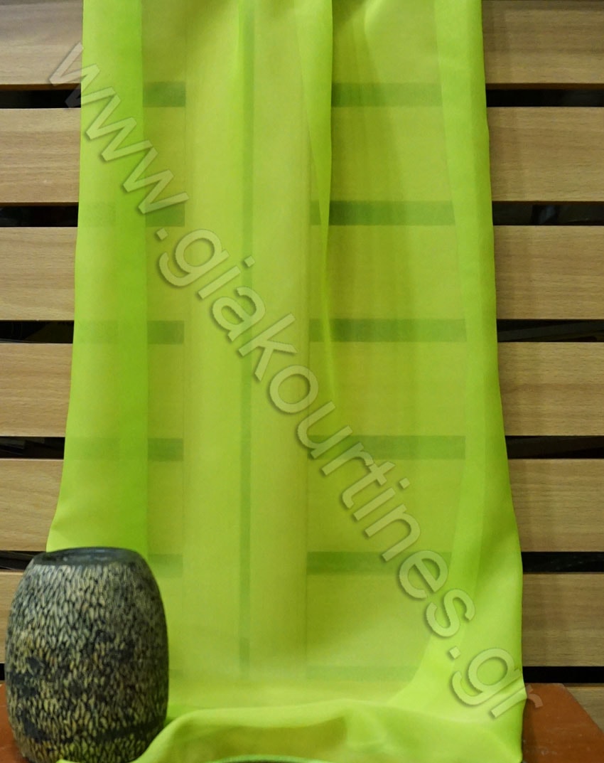 Κουρτίνα βουάλ, διάφανη, με βαρίδι στο τελείωμα.Το χρώμα της κουρτίνας είναι λαχανί. Εξαιρετικά χυτό ύφασμα.