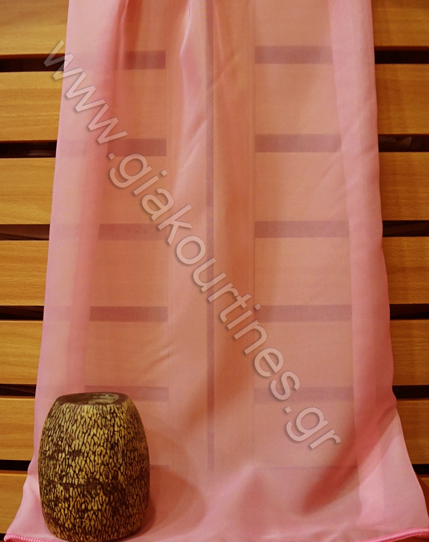 Κουρτίνα βουάλ, διάφανη, με βαρίδι στο τελείωμα.Το χρώμα της κουρτίνας είναι ροζ. Εξαιρετικά χυτό ύφασμα.