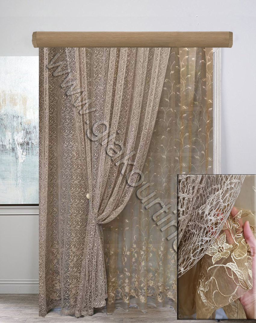Κουρτίνα δίχτυ, με διαφάνεια έτοιμο ραμμένο. Χρώμα μπεζ σκούρο.