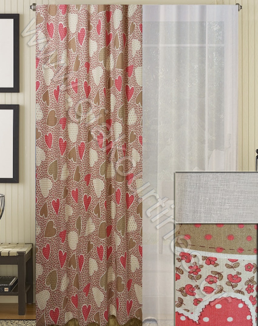 Ριντό αδιάφανο ραμμένο, λονέτα Ισπανίας με καρδούλες. Το χρώμα της κουρτίνας είναι ουδέτερο μπεζ με φρεζ.