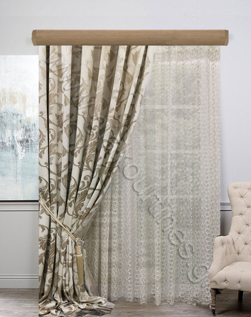 Το ριντό είναι ραμμένο με τρέσα σχέδιο vanity 10 εκατοστών και η κουρτίνα με συνεχόμενη πιέτα 8 εκατοστών. Οι τρέσσες είναι ελληνικές. Αν επιθυμείτε κάποιο άλλο είδος ραφής ή να συνδυάσετε με κάποια διαφορετική εσωτερική κουρτίνα, επικοινωνήστε μαζί μας. Ιδανικό σετ για σαλόνι, καθιστικό καθώς και υπνοδωμάτιο. Οι κουρτίνες μπορούν να ραφτούν σε επιθυμητή διάσταση.