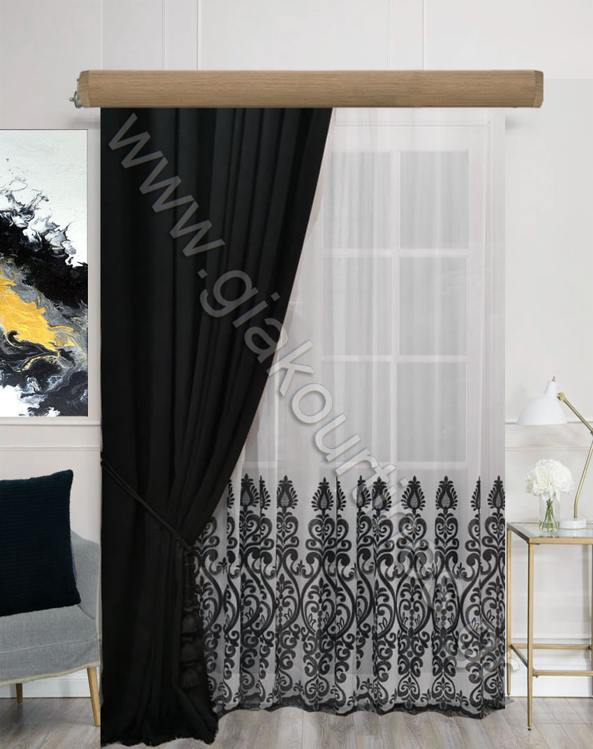 Το ριντό είναι ραμμένο με τρέσα σχέδιο vanity 10 εκατοστών και η κουρτίνα με συνεχόμενη πιέτα 8 εκατοστών. Οι τρέσες είναι ελληνικές. Αν επιθυμείτε κάποιο άλλο είδος ραφής ή να συνδυάσετε με κάποια διαφορετική εσωτερική κουρτίνα, επικοινωνήστε μαζί μας. Ιδανικό σετ για σαλόνι, καθιστικό καθώς και υπνοδωμάτιο. Οι κουρτίνες μπορούν να ραφτούν σε επιθυμητή διάσταση.