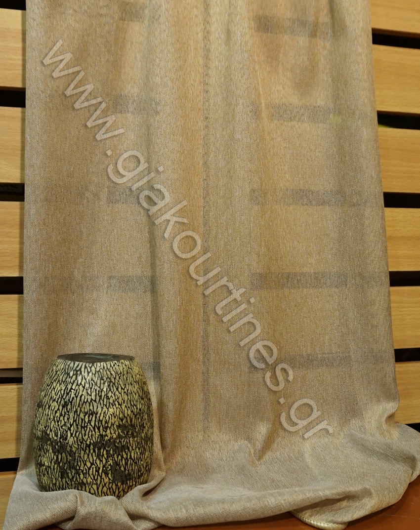Ύφασμα ματ, με διαφάνεια και βαρίδι στο τελείωμα. Είναι σταθερό ύφασμα και μαλακό. Το χρώμα του είναι έλεφαντ. Μπορεί να χρησιμοποιηθεί ως κουρτίνα μόνη της ή σε συνδυασμό με κάποια πιο χοντρή ή ως ανάλαφρο ριντό.