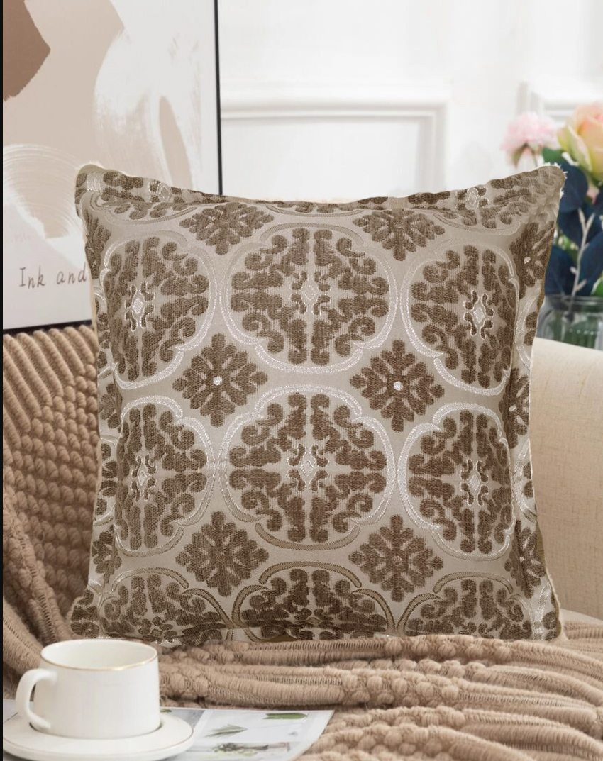Διάσταση: 45×45 Ποιότητα: Ταφτάς. Αποχρώσεις μπεζ , πούρου.