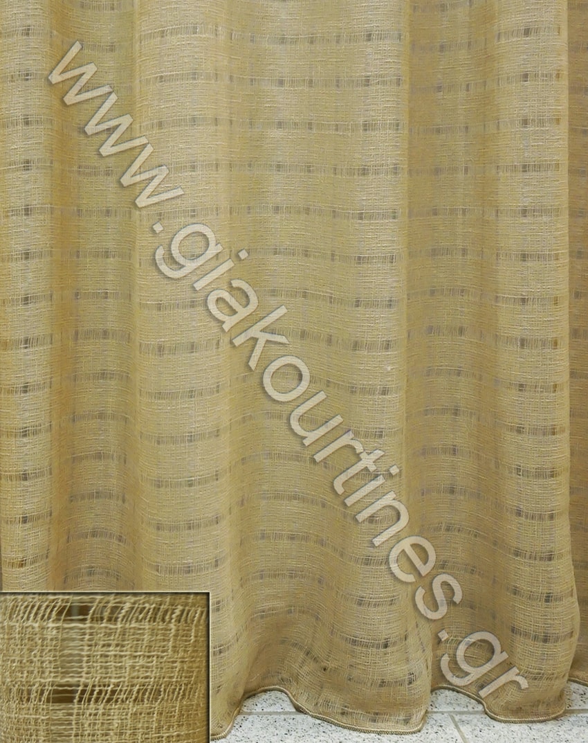 Ύφασμα μοντέρνο διχτάκι τύπου λινό πολυέστερ, με διαφάνεια. Το χρώμα του είναι μπεζοσπαγγί. Είναι ύφασμα που σιδερώνεται εύκολα. Μπορεί να χρησιμοποιηθεί ως κουρτίνα μόνη της ή σε συνδυασμό με κάποια πιο χοντρή ή ως ανάλαφρο ριντό.