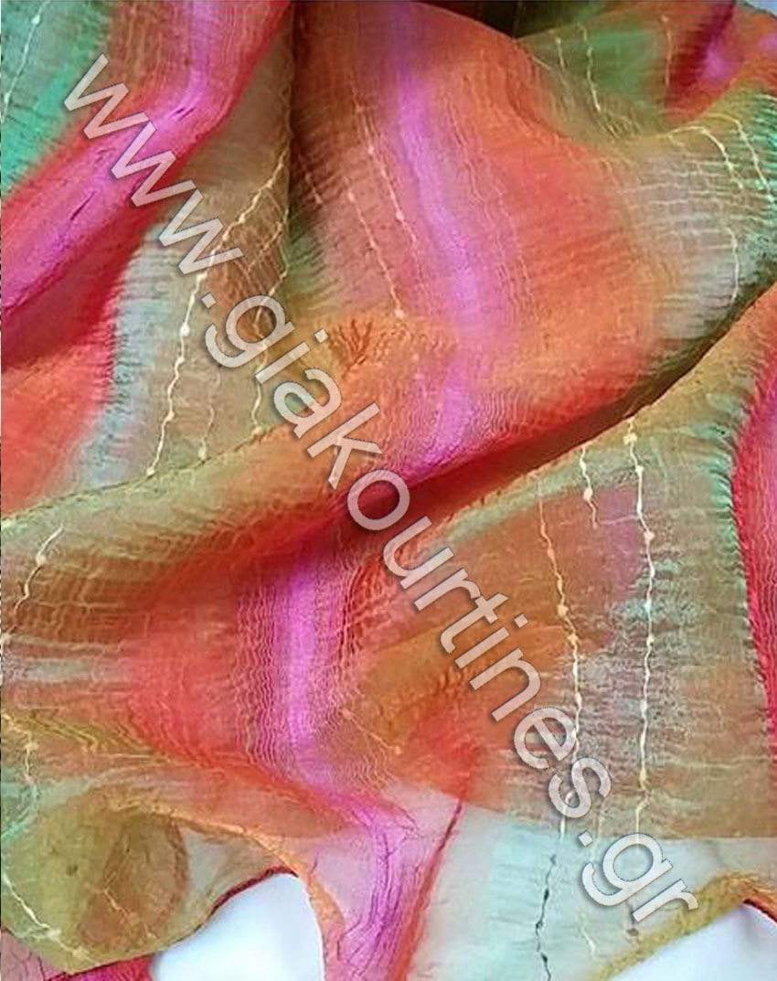Κουρτίνα διάφανη ατσαλάκωτη οργάντζα, αποχρώσεις φουξ,πράσινο, πορτοκαλί.