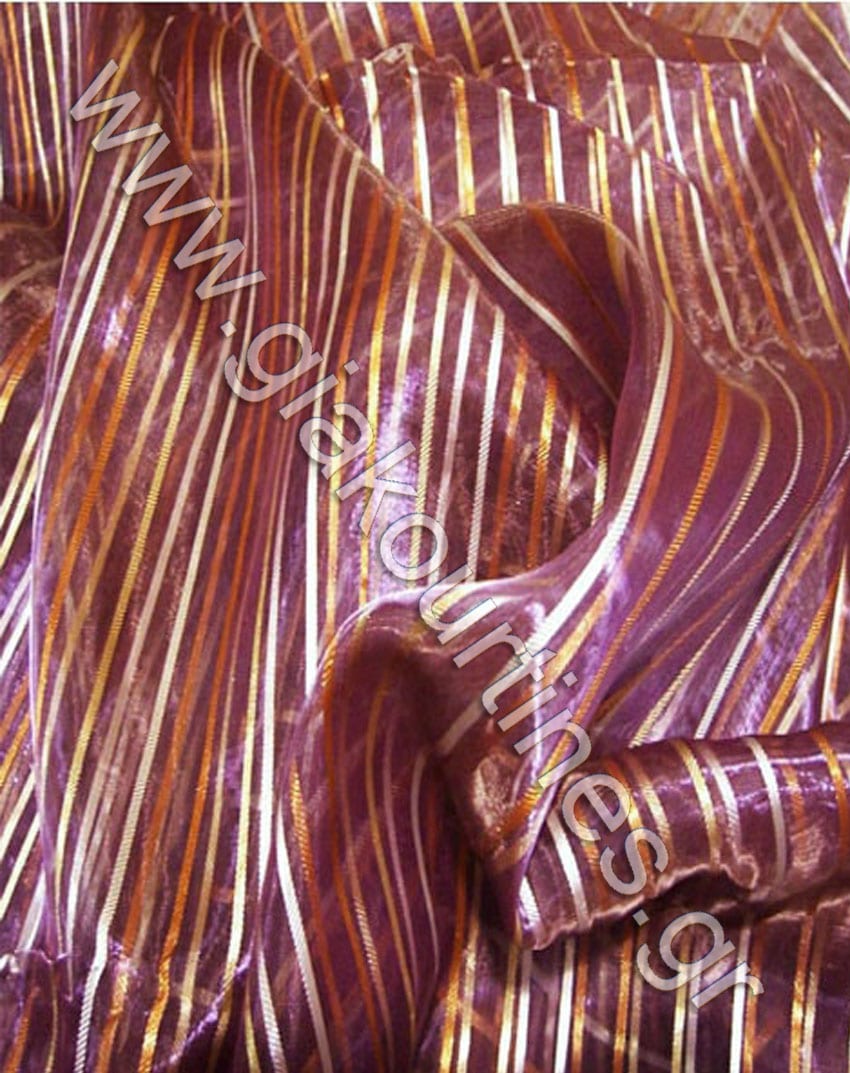 Κουρτίνα διάφανη σταθερή οργάντζα, χρώμα μωβ με ρίγες πορτοκαλί, κίτρινο, του πάγου.