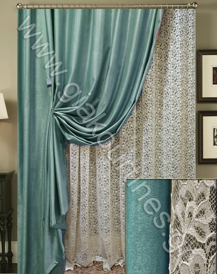 ΡΙΝΤΟ ΒΕΛΟΥΡ ΤΙΡΚΟΥΑΖ 2,50Μ ΦΑΡΔΟΣ, ΚΟΥΡΤΙΝΑ ΔΑΝΤΕΛΑ ΚΙΠΟΥΡ 4Μ ΦΑΡΔΟΣ