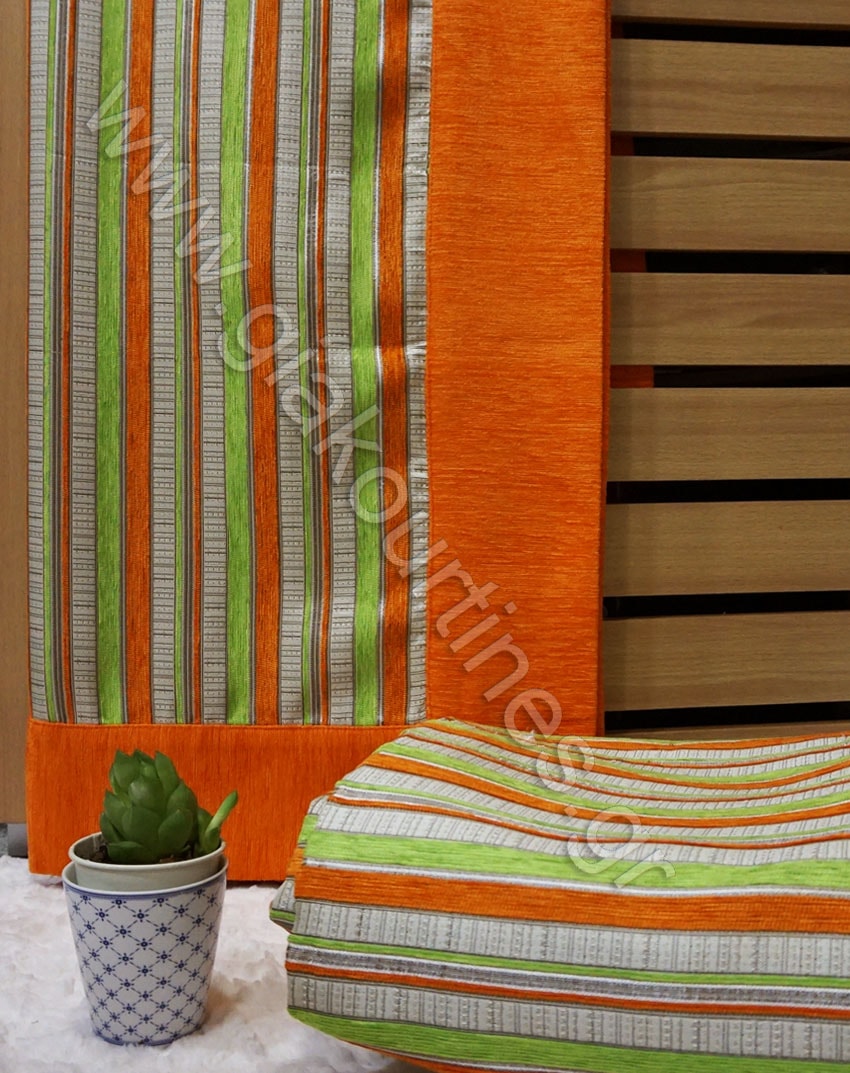 Χρώμα: Υπόλευκο με σενίλ ρίγες πορτοκαλί, λαχανί
