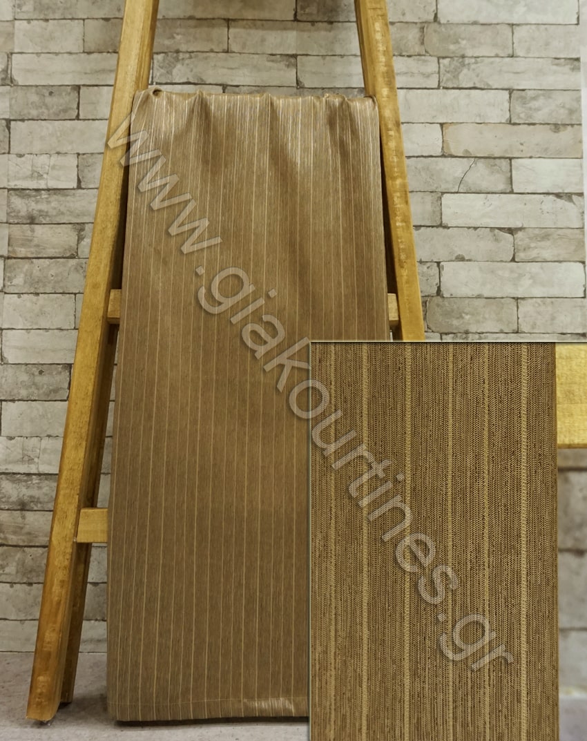 Ύφασμα για κουρτίνα,ποιότητα ταφτάς. Το χρώμα της κουρτίνας είναι καφέ με αχνή ρίγα. Μπορεί να χρησιμοποιηθεί μόνη της, ως κουρτίνα σκίασης ή σε συνδυασμό με κάποια πιο λεπτή, ως ριντό ή ως ρόμαν πακέτο.