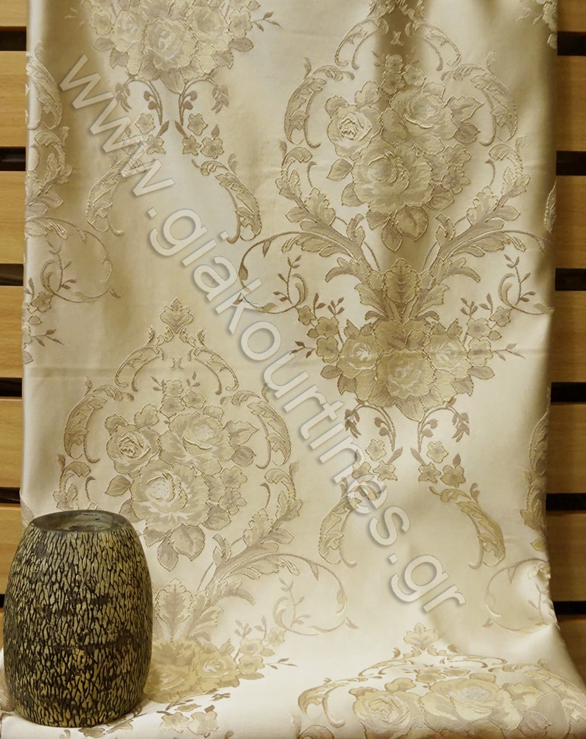 ΥΦΑΣΜΑ ΣΑΤΙΝΕ ΤΑΦΤΑΣ ΜΠΑΡΟΚ ΒΑΡΥΣ ΑΝΑΓΛΥΦΟΣ ΠΟΛΥΤΕΛΕΙΑΣ ΜΕ ΣΤΡΑΣ, ΧΡΩΜΑ ΜΠΕΖ ΕΚΡΟΥ ΜΕ ΜΟΤΙΒΑ ΤΡΙΑΝΤΑΦΥΛΛΑ ΚΑΙ ΚΛΩΣΤΗ GLITTER ΣΤΟ ΚΕΝΤΡΟ ΤΟΥΣ. ΙΔΑΝΙΚΟΣ ΓΙΑ ΝΑ ΧΡΗΣΙΜΟΠΟΙΗΘΕΙ ΩΣ ΡΙΝΤΟ ΜΕ ΜΙΑ ΑΛΛΗ ΚΟΥΡΤΙΝΑ ΕΣΩΤΕΡΙΚΑ Ή ΓΙΑ ΚΑΤΑΣΚΕΥΗ ΡΟΜΑΝ.