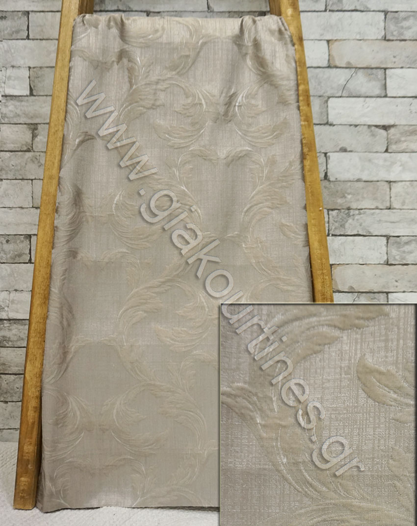 Ύφασμα για κουρτίνα, ζακάρ, εξαιρετικής ποιότητας, Ευρωπαϊκών προδιαγραφών. Το χρώμα του υφάσματος είναι μεταλλιζέ γκρεζ προς έλεφαντ. Ιδανικό για χώρους με υψηλή αισθητική, για ένα κομψό και επιβλητικό αποτέλεσμα.Μπορεί να χρησιμοποιηθεί μόνη της, ως κουρτίνα σκίασης ή σε συνδυασμό με κάποια πιο λεπτή, ως ριντό ή ως ρόμαν πακέτο.