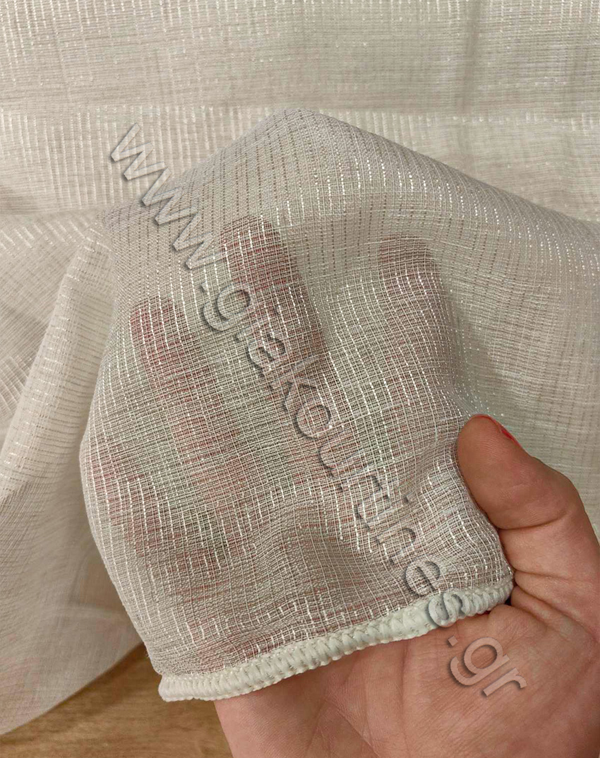 Κουρτίνα ημιδιάφανη, γάζα με φλος κλωστή στην ύφανση. Μοντέρνο ύφασμα, χυτό και μαλακό. Το χρώμα της κουρτίνας είναι ιβουάρ.