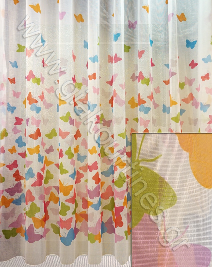 ΥΦΑΣΜΑ ΓΑΖΑ ΤΥΠΟΥ ΛΙΝΟ ΜΕ ΠΕΤΑΛΥΔΕΣ, ΒΑΣΗ ΥΠΟΛΕΥΚΗ ΚΑΙ ΧΡΩΜΑΤΙΣΤΕΣ ΠΕΤΑΛΟΥΔΕΣ.