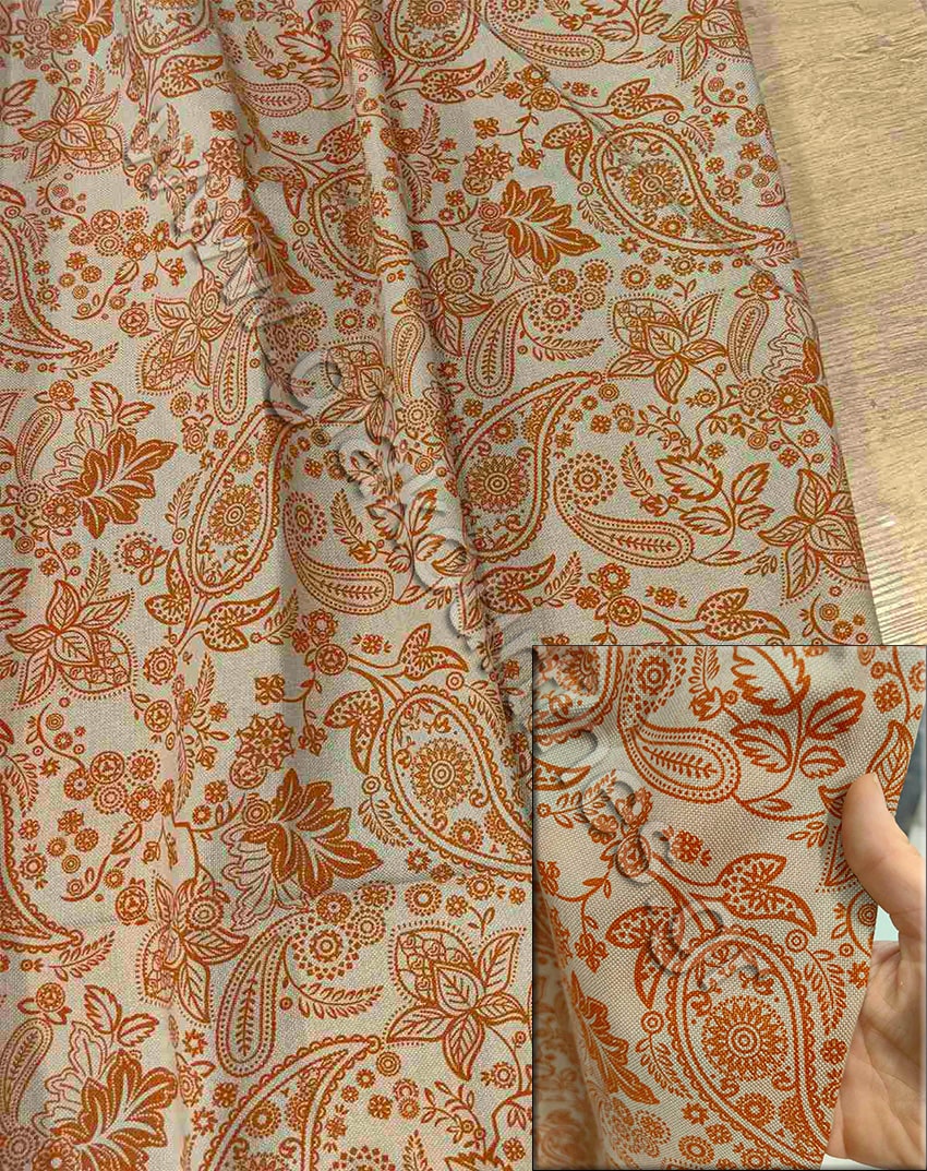 Ύφασμα για κουρτίνα , χωρίς διαφάνεια, λονέτα καραβόπανο Ισπανίας άριστης ποιότητας. Η βάση της κουρτίνας είναι μπεζ με σχέδιο λαχούρι στο χρώμα της σκουριάς.