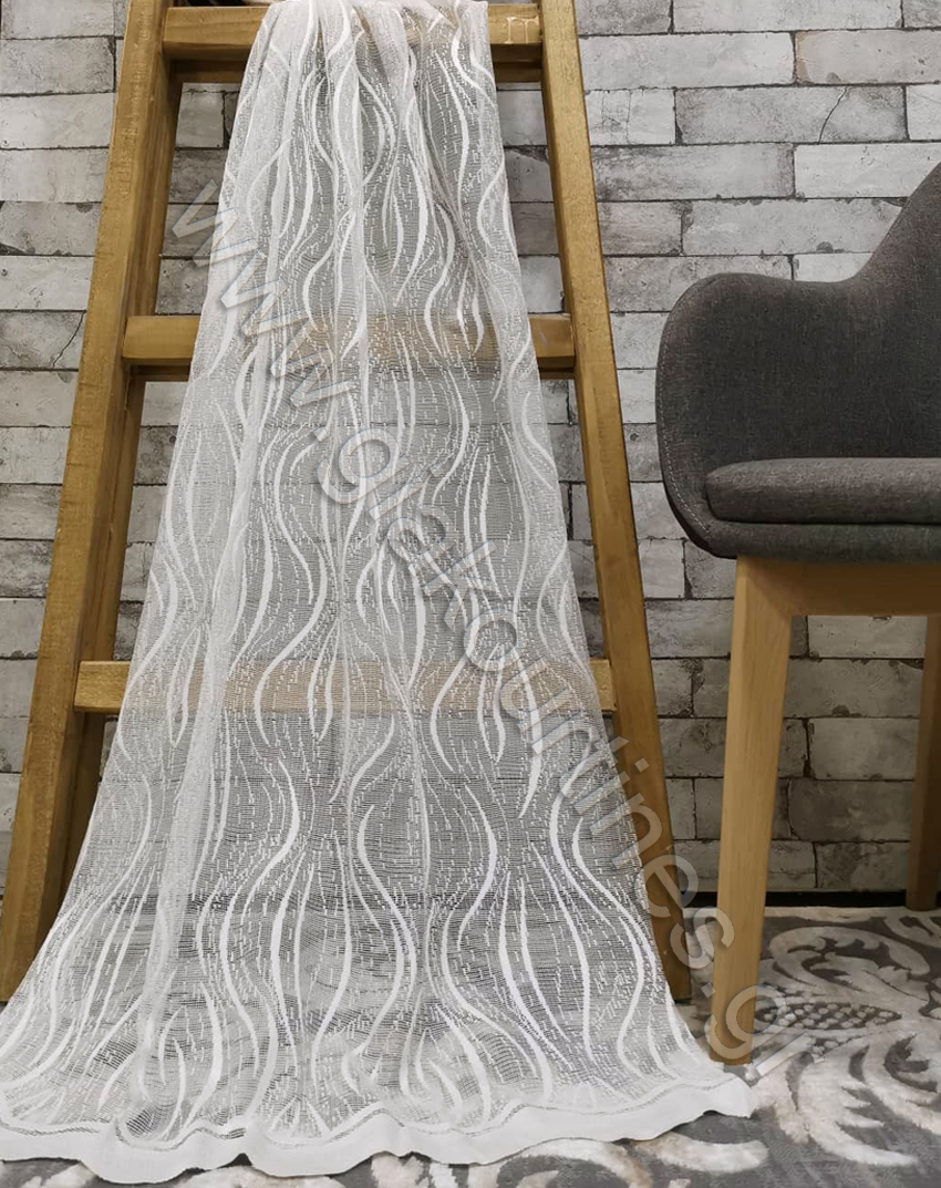 Ύφασμα για κουρτίνα, σταθερή δαντέλα, εξαιρετικής ποιότητας, Ευρωπαϊκών προδιαγραφών. Το χρώμα της είναι υπόλευκο, με μοντέρνο μοτίβο. Είναι ατσαλάκωτο ύφασμα και διαθέτει φιστόνι στο τελείωμα. Ιδανικό για χώρους με υψηλή αισθητική, για ένα κομψό αποτέλεσμα.
