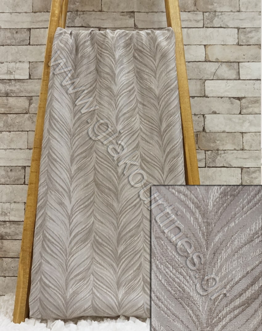 Ύφασμα για κουρτίνα, ματ, εξαιρετικά χυτό και μαλακό. Το χρώμα της κουρτίνας είναι διαβαθμίσεις του γκρι . Ό,τι πιο μοντέρνο σε χρώματα και σχέδια. Μπορεί να χρησιμοποιηθεί μόνη της, ως κουρτίνα σκίασης ή σε συνδυασμό με κάποια πιο λεπτή, ως ριντό ή ως ρόμαν πακέτο.